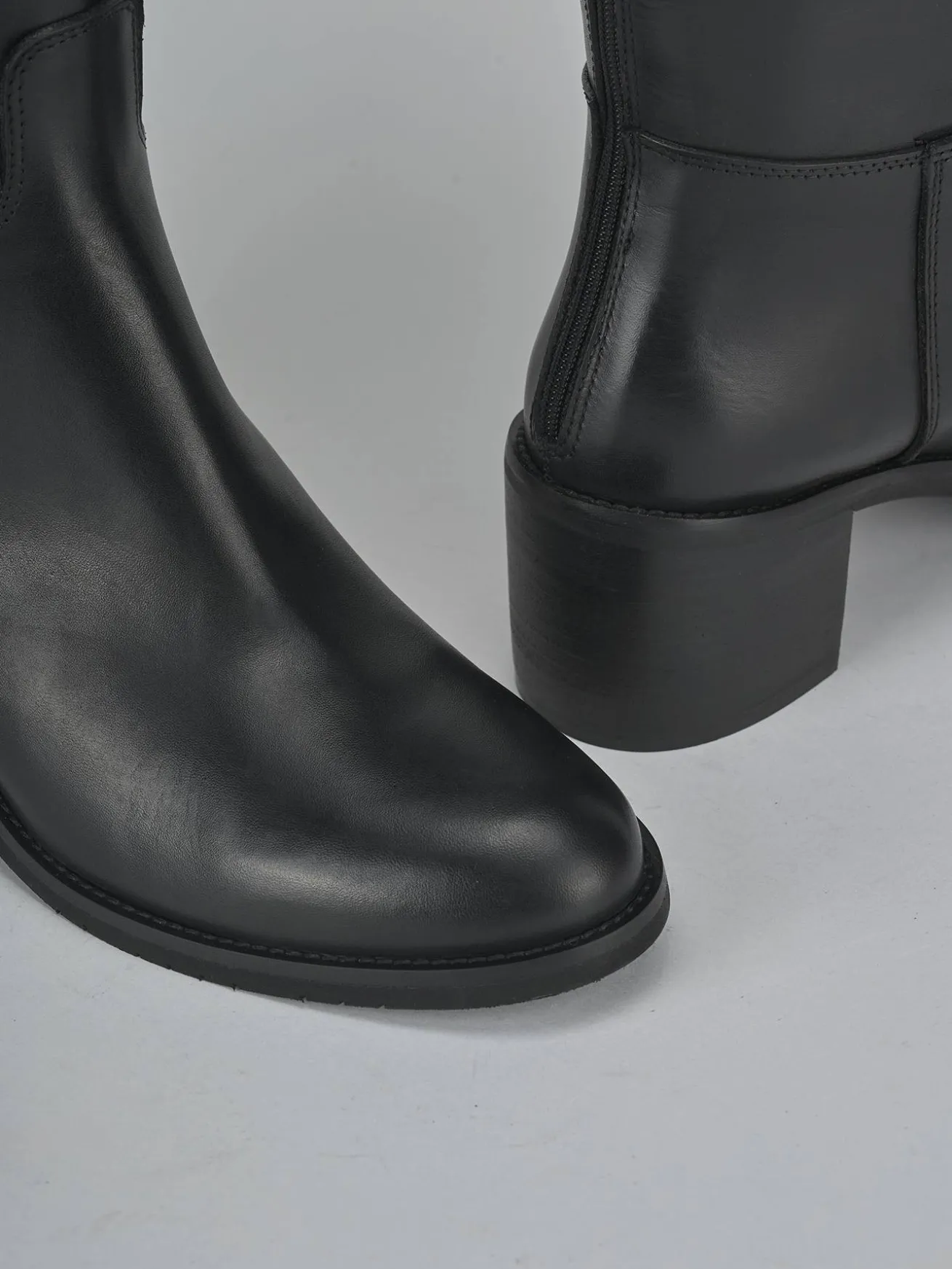 Realizzati in morbida pelle nera, questi stivali a tacco alto di 5 cm offrono un tocco di classe senza rinunciare alla comodità.
