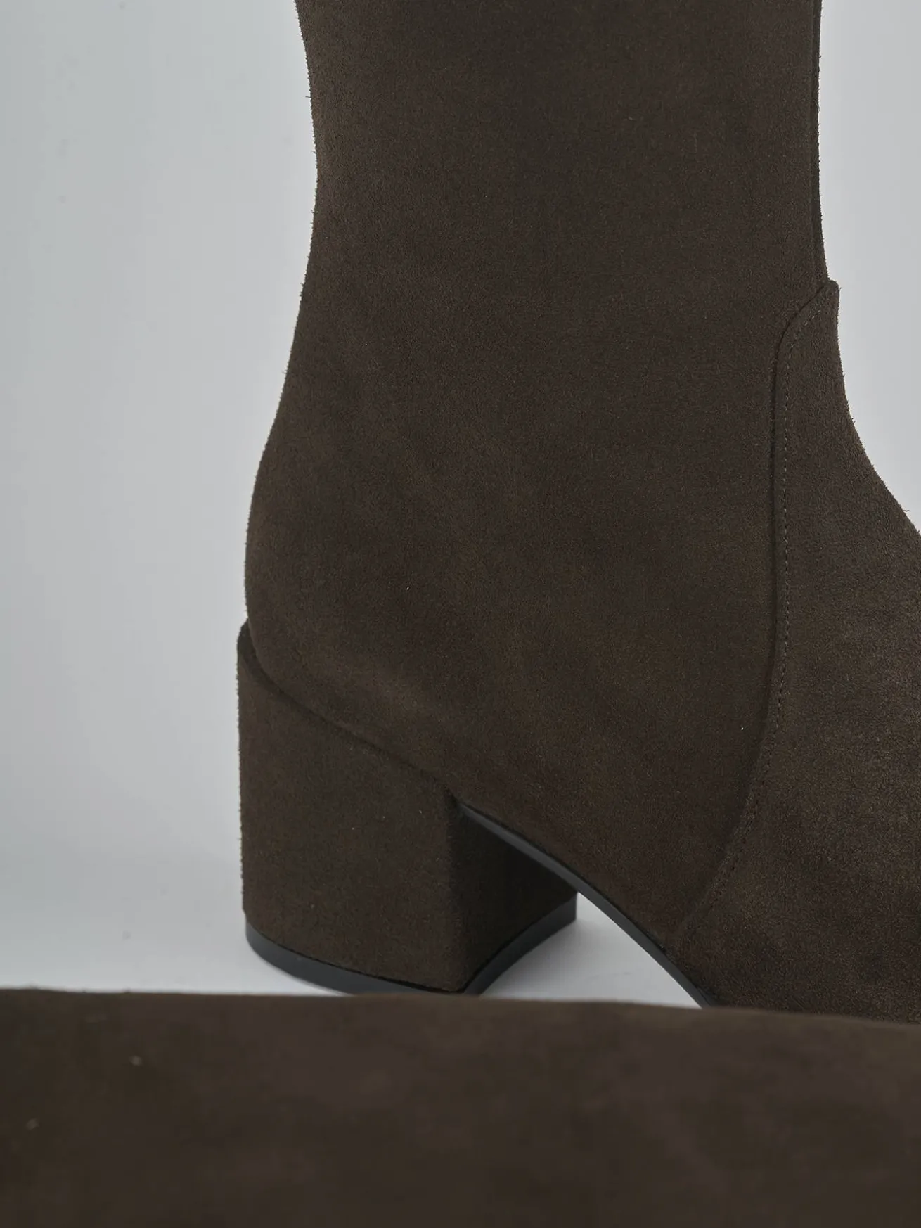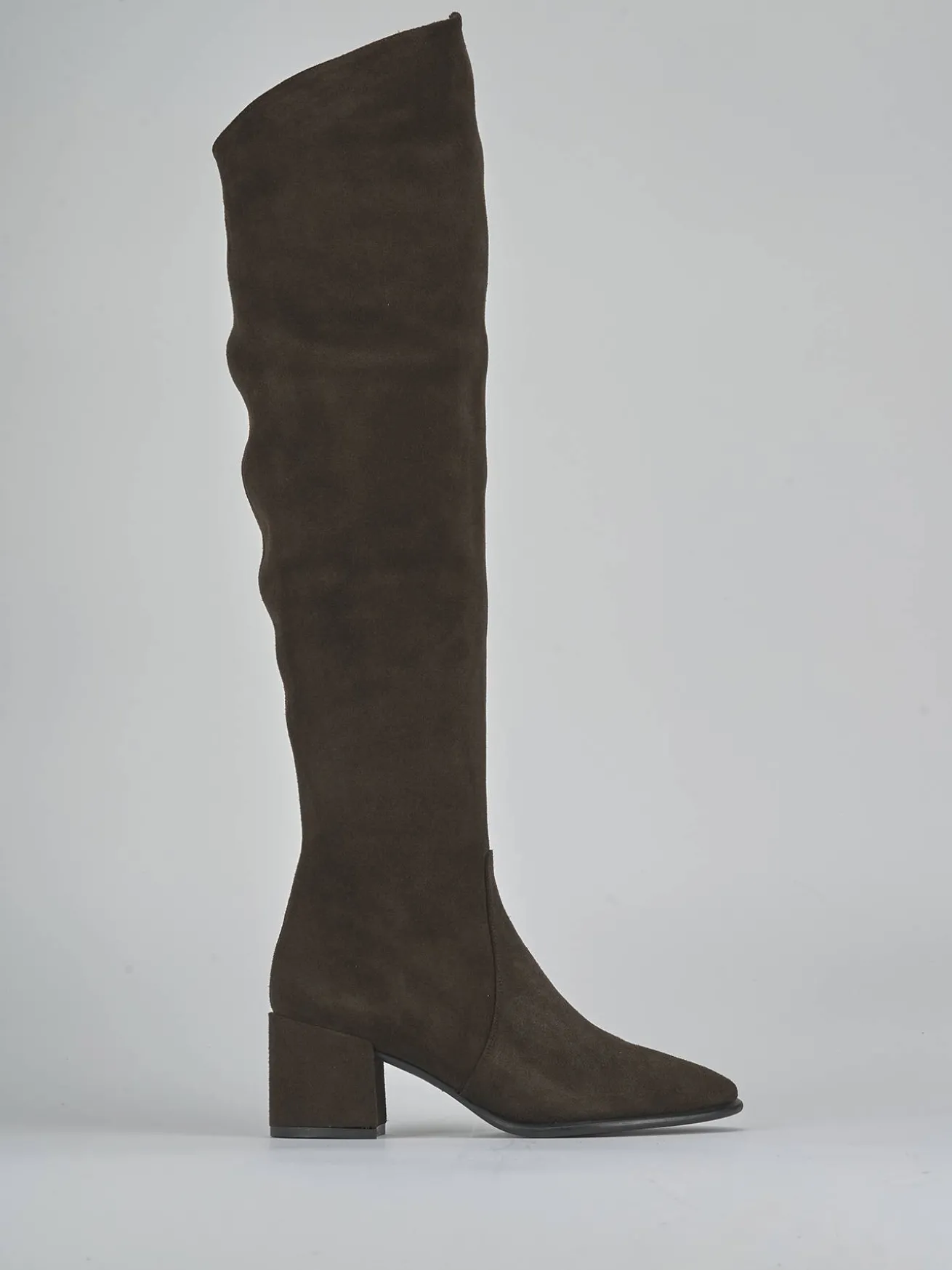 Realizzati in morbido camoscio color testa di moro, questi stivali sono il connubio ideale tra stile e comfort.