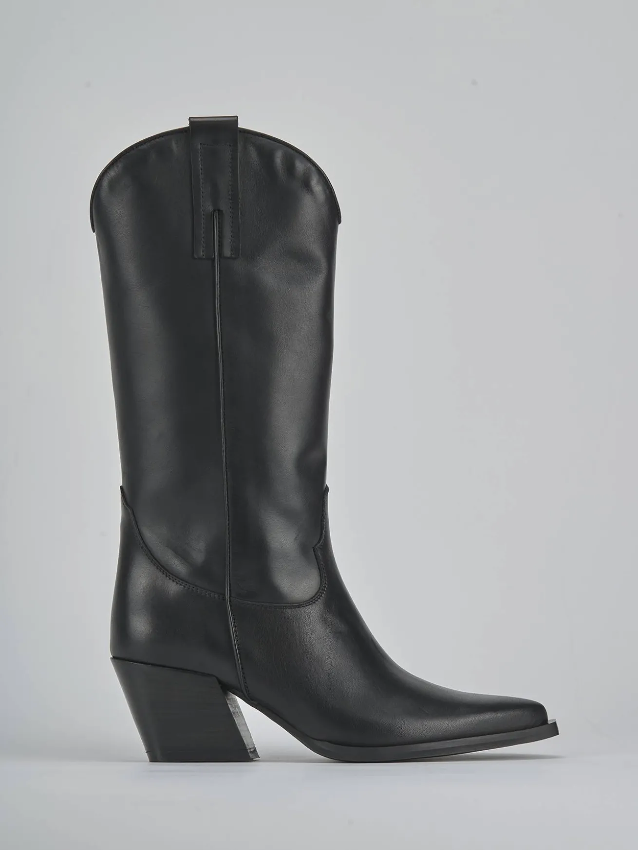 Stivale tacco 6 cm fondo in leggera gomma e soletto interno in vera pelle. Tomaia in morbida pelle, punta sfilata, ghette che mantengono la forma del gambale che misura 3/4 del polpaccio e tacco cubano per un look cool. Perfetto e versatile con ogni tuo look.