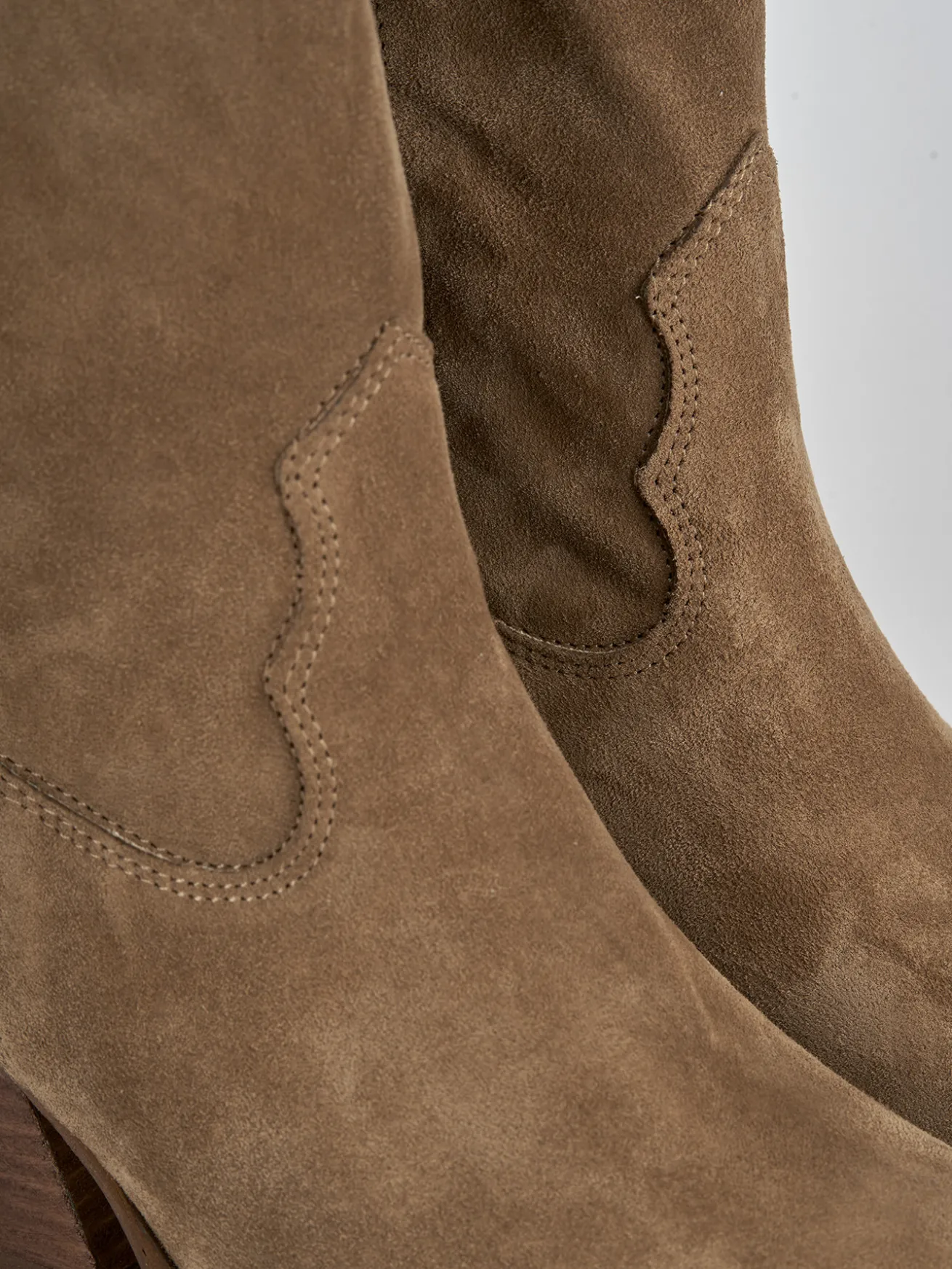 Stivale texano tacco 6.5 cm fondo in leggerissima gomma e soletto interno in vera pelle. tomaia in morbido camoscio, punta sfilata, cuciture a vista, piccolo spacco a ‘V’ frontale, cerniera laterale, ghette per sostenere gambale che misura appena sotto il ginocchio e tacco cubano. Perfetto per le tue occasioni più speciali.