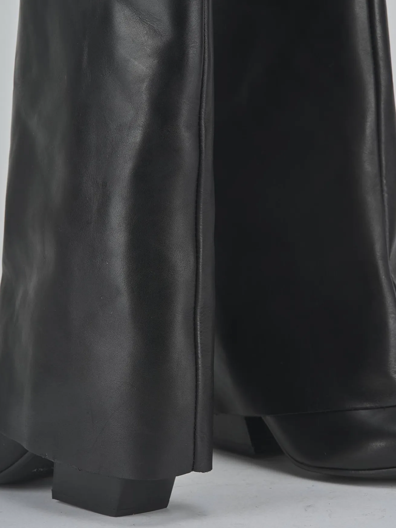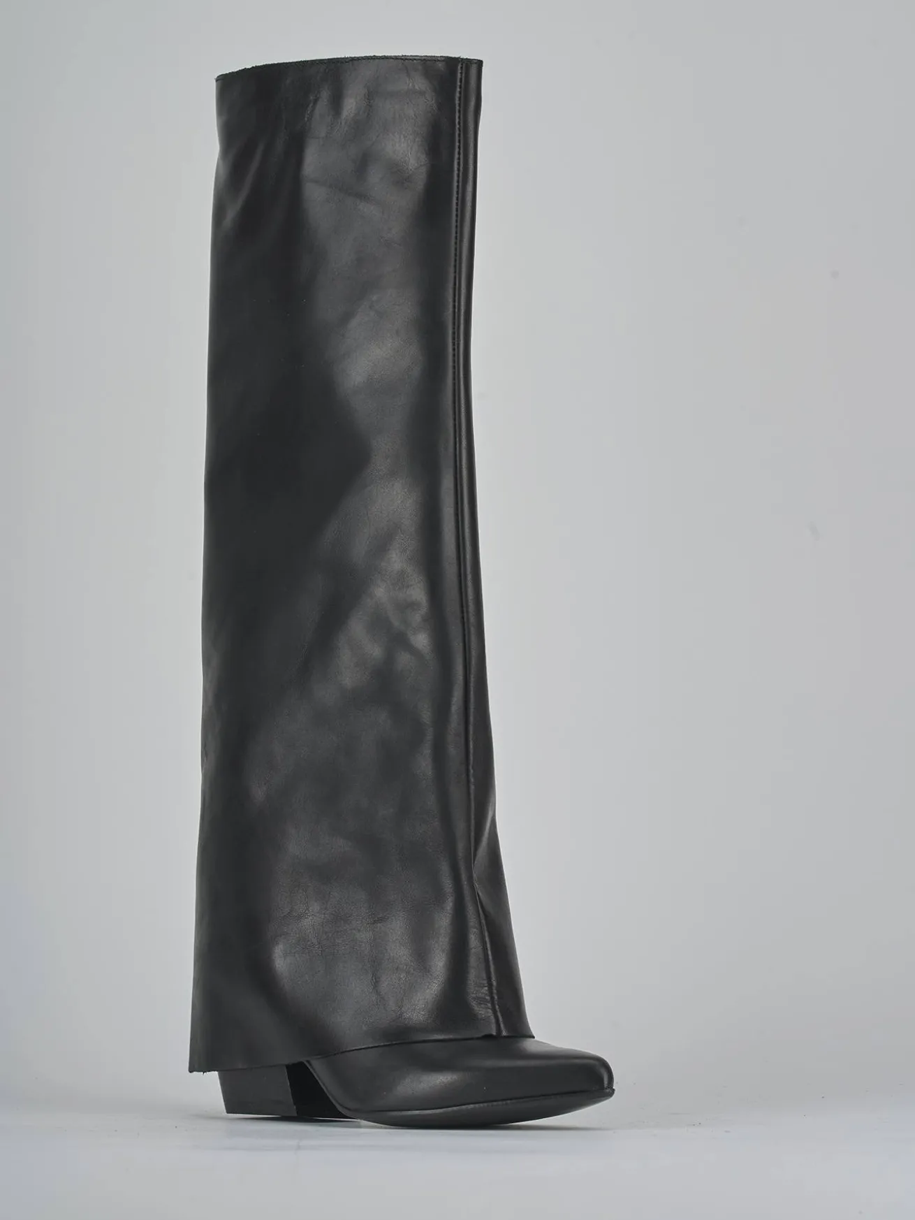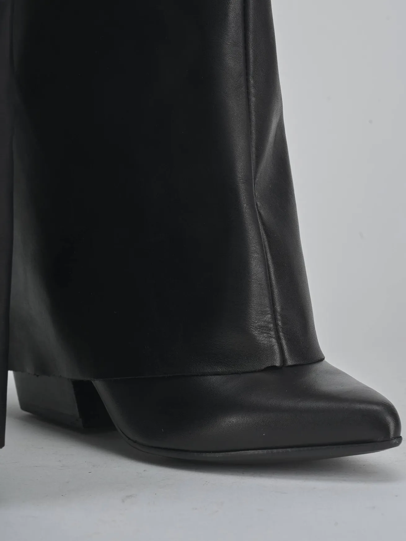 La punta sfilata aggiunge un tocco sofisticato, mentre il particolarissimo risvolto sul gambale, che arriva appena sopra il ginocchio, dona un look distintivo e chic.