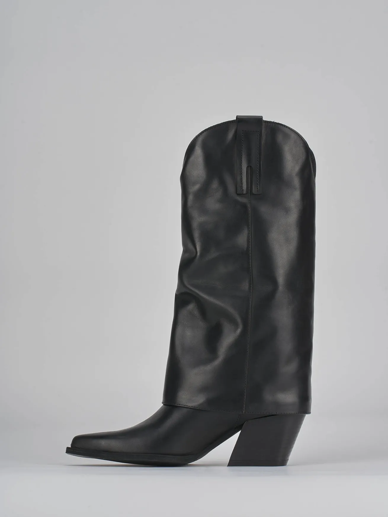 Realizzati in morbida pelle, questi stivali presentano una punta sfilata che richiama lo stile texano, aggiungendo un tocco di originalità al tuo outfit.