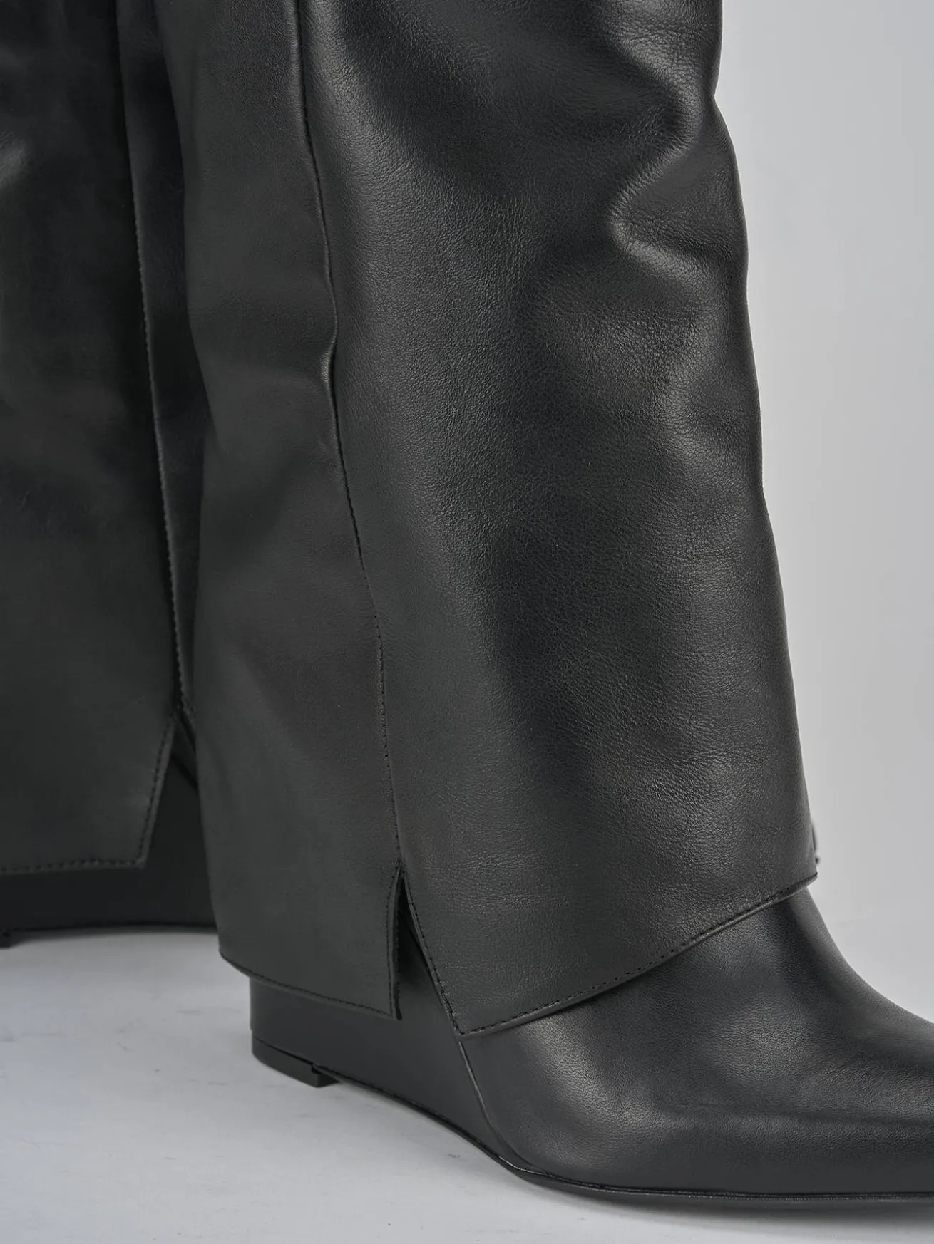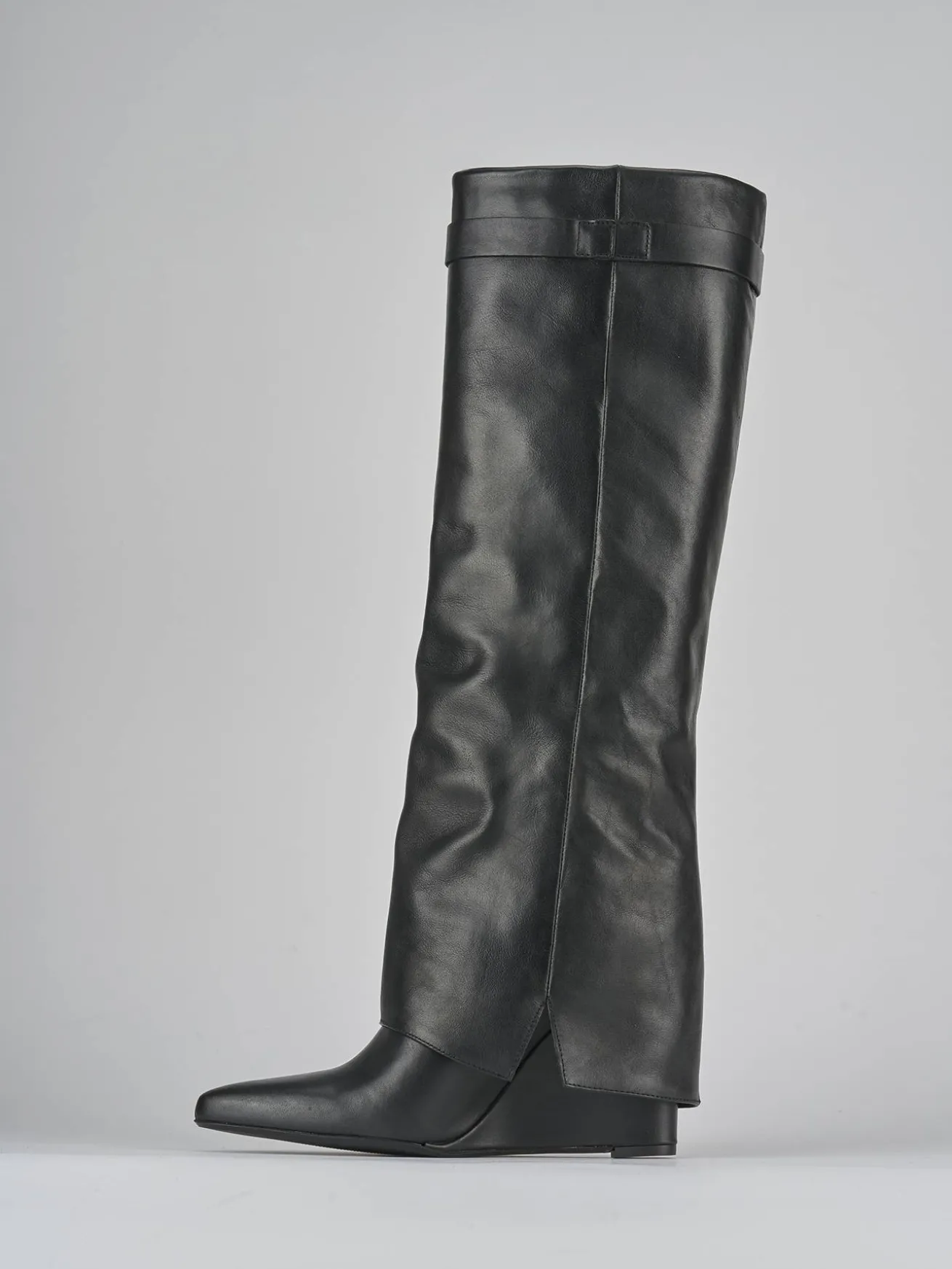 Il risvolto del gambale si ferma appena sotto il ginocchio, offrendo un design elegante e versatile.