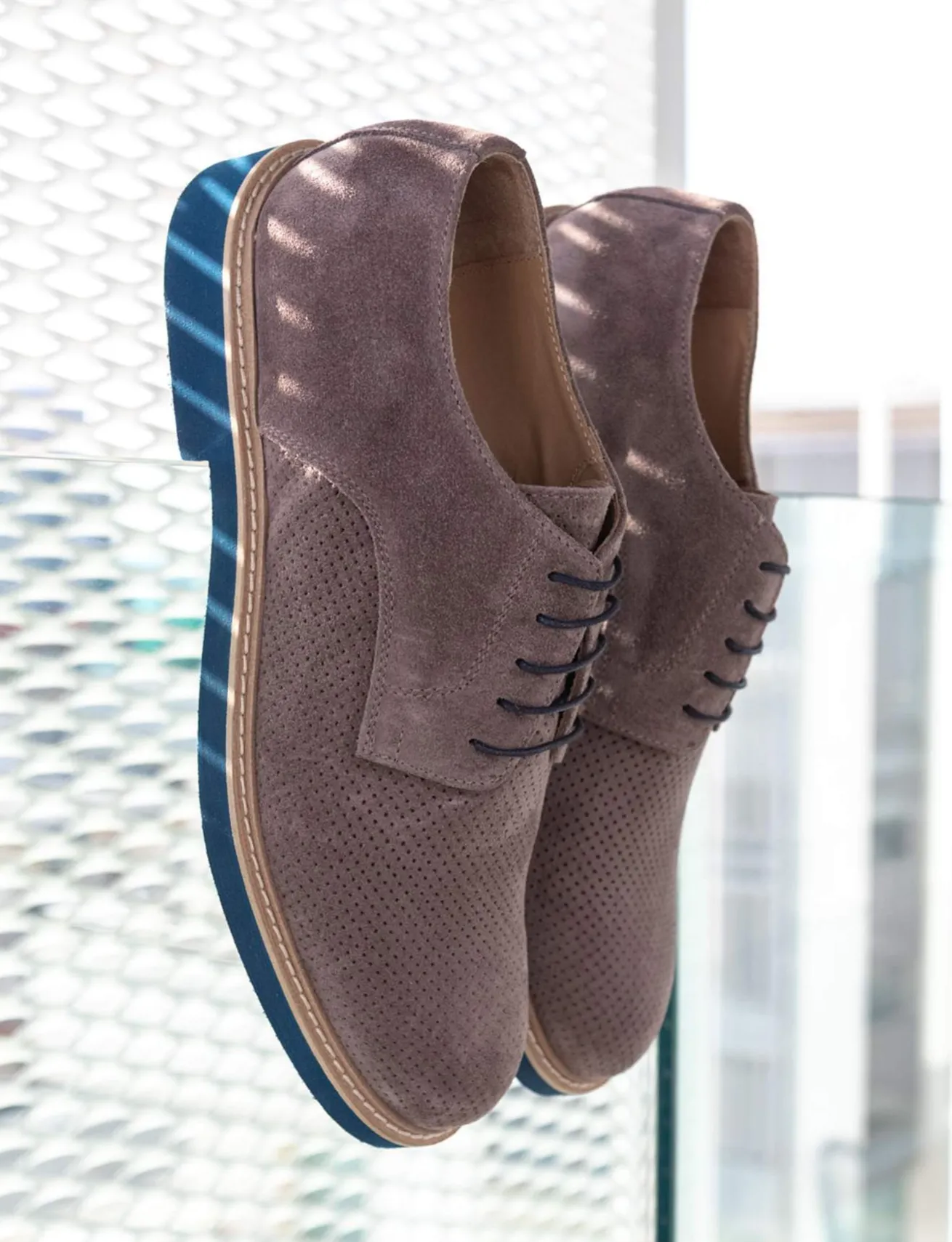 Il design derby con lacci e la punta affusolata conferiscono un tocco di raffinatezza, mentre il microforato in punta aggiunge un dettaglio distintivo.