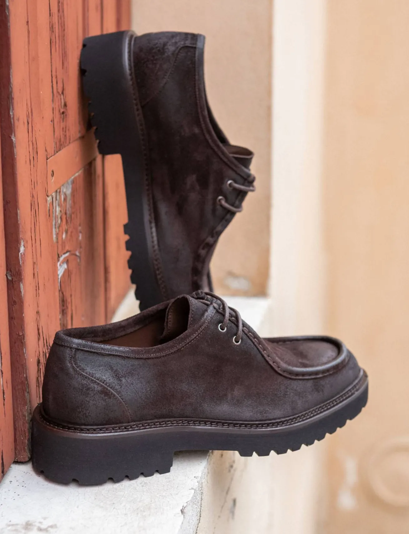 La punta leggermente squadrata e le cuciture visibili alla norvegese aggiungono un tocco di raffinatezza al design.
