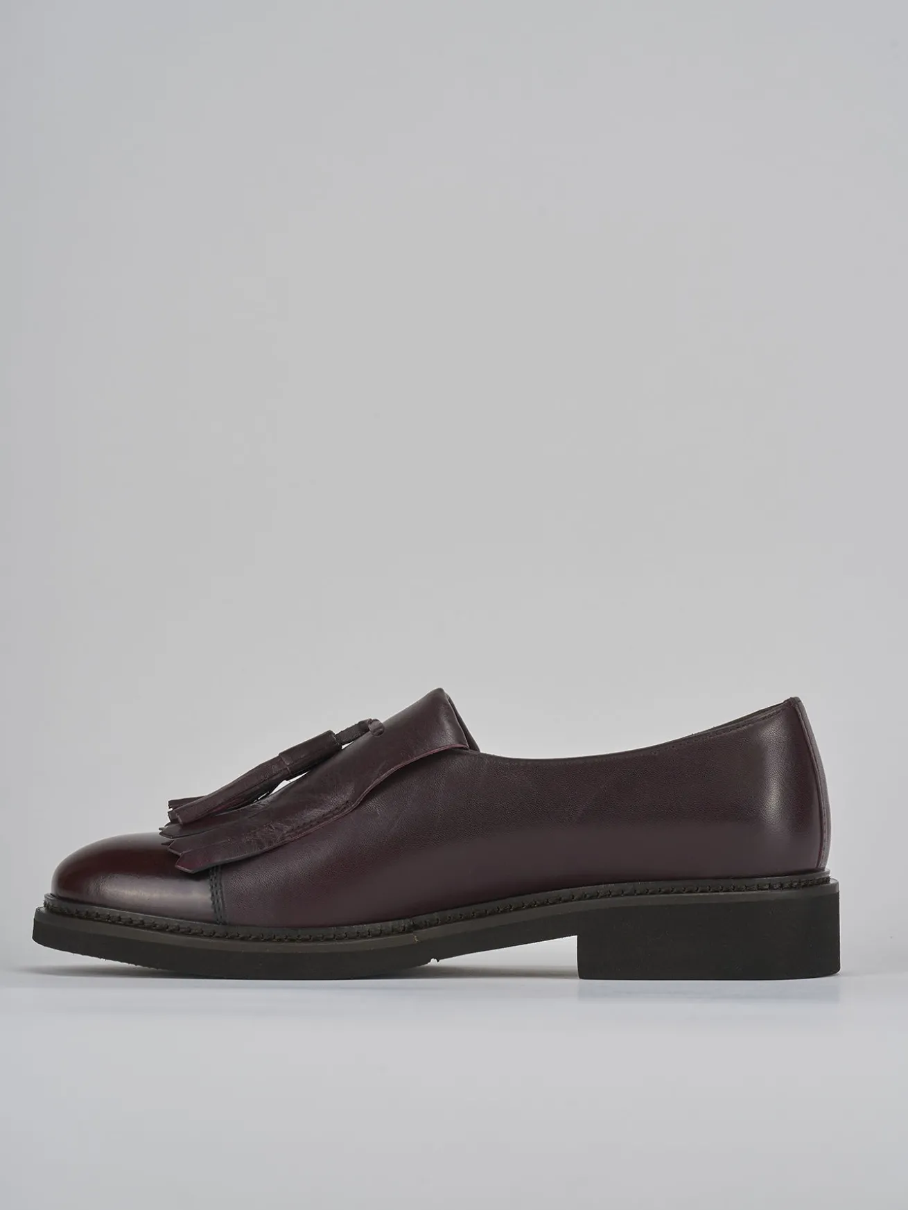 Stringata tacco 2 cm fondo in gomma e soletto interno in vera pelle. tomaia in morbida pelle, punta affusolata, puntale ton sur ton, nappine e frange per un look davvero cool.