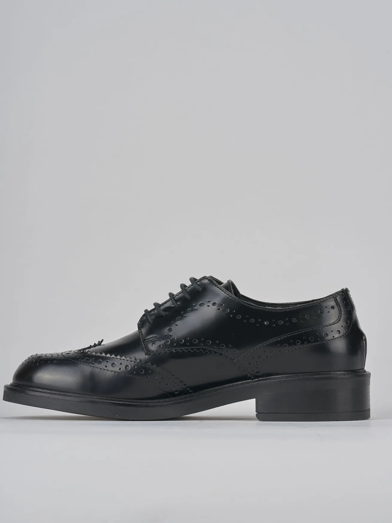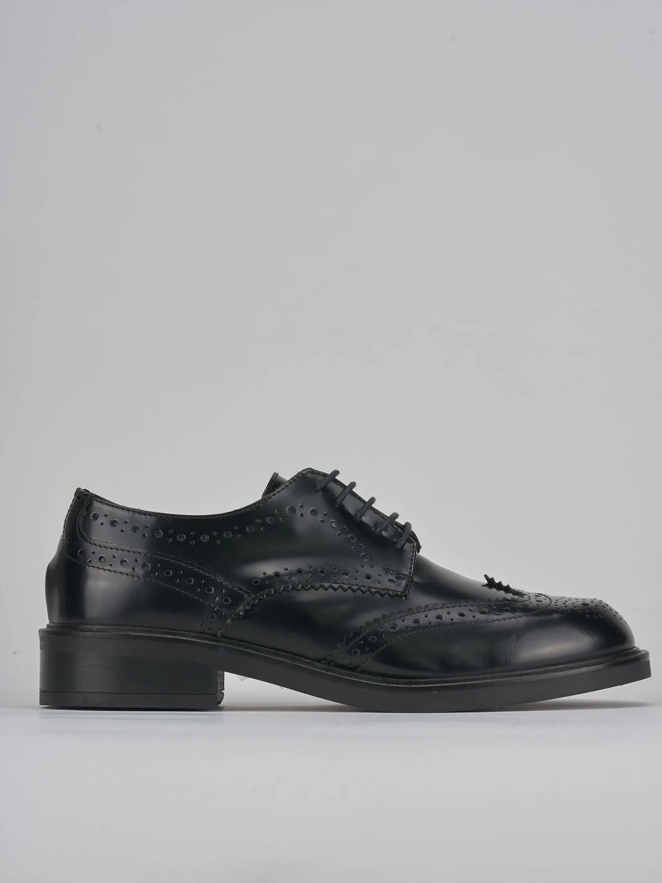 stringata tacco 2 cm fondo in gomma e soletto interno in vera pelle. tomaia in morbida pelle spazzolata, punta tonda, lace, lavorazione inglese a coda di rondine, modello derby. perfetto con un vestito o dei pantaloni.