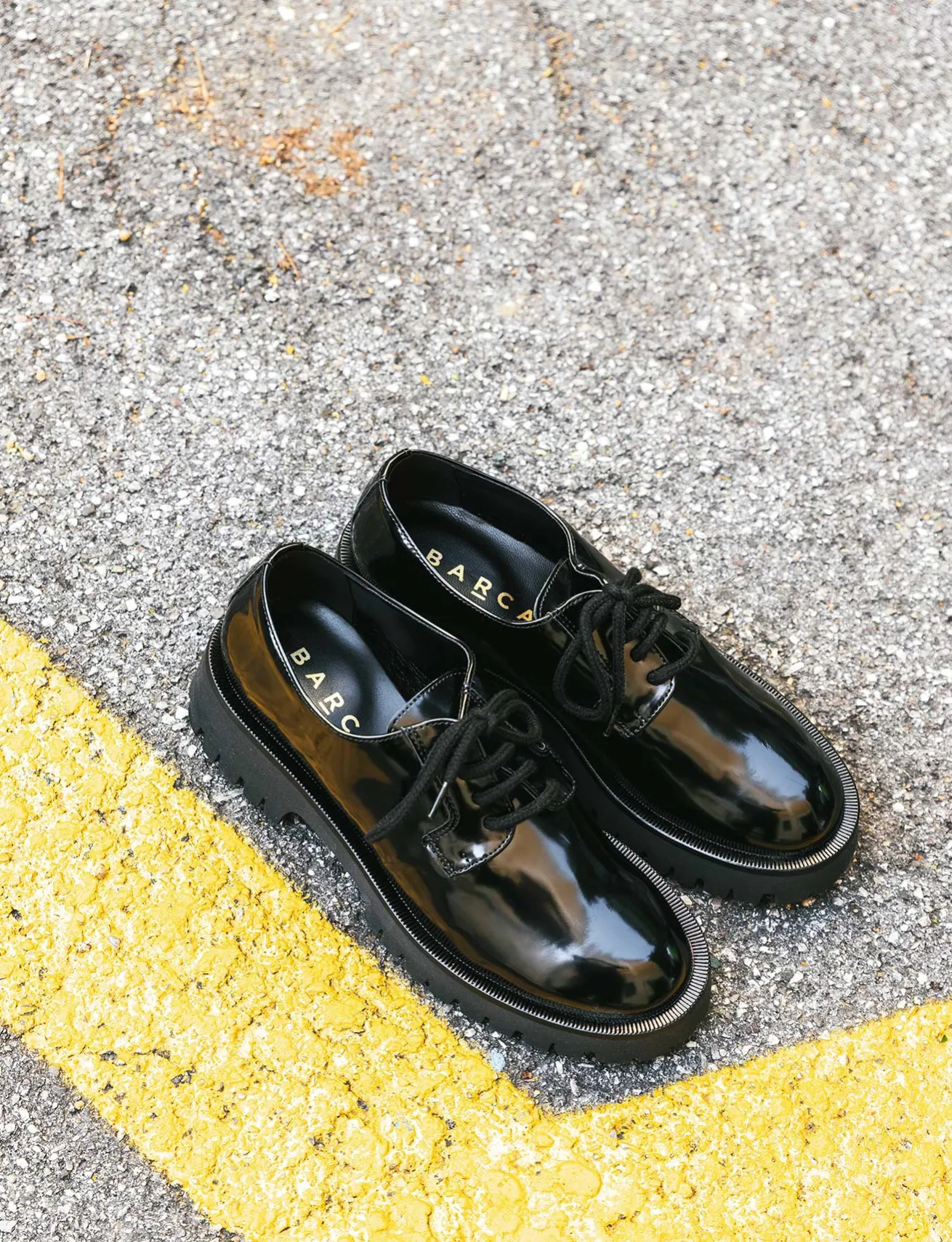 stringata tacco 2 cm fondo in gomma e soletto interno in vera pelle. tomaia in morbida pelle abrasivata, punta tonda, lace, modello derby e fondo carro armato per un look cool.