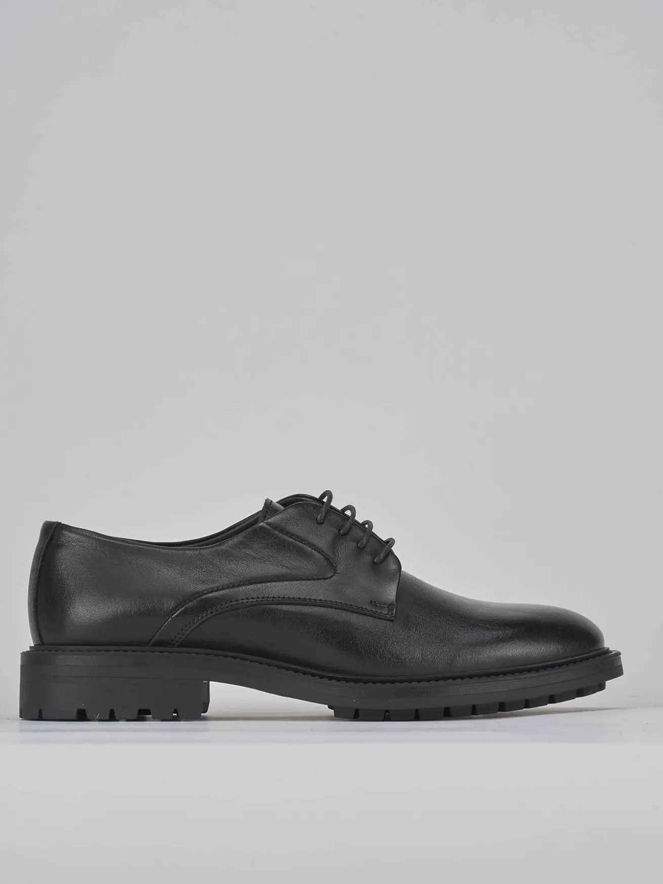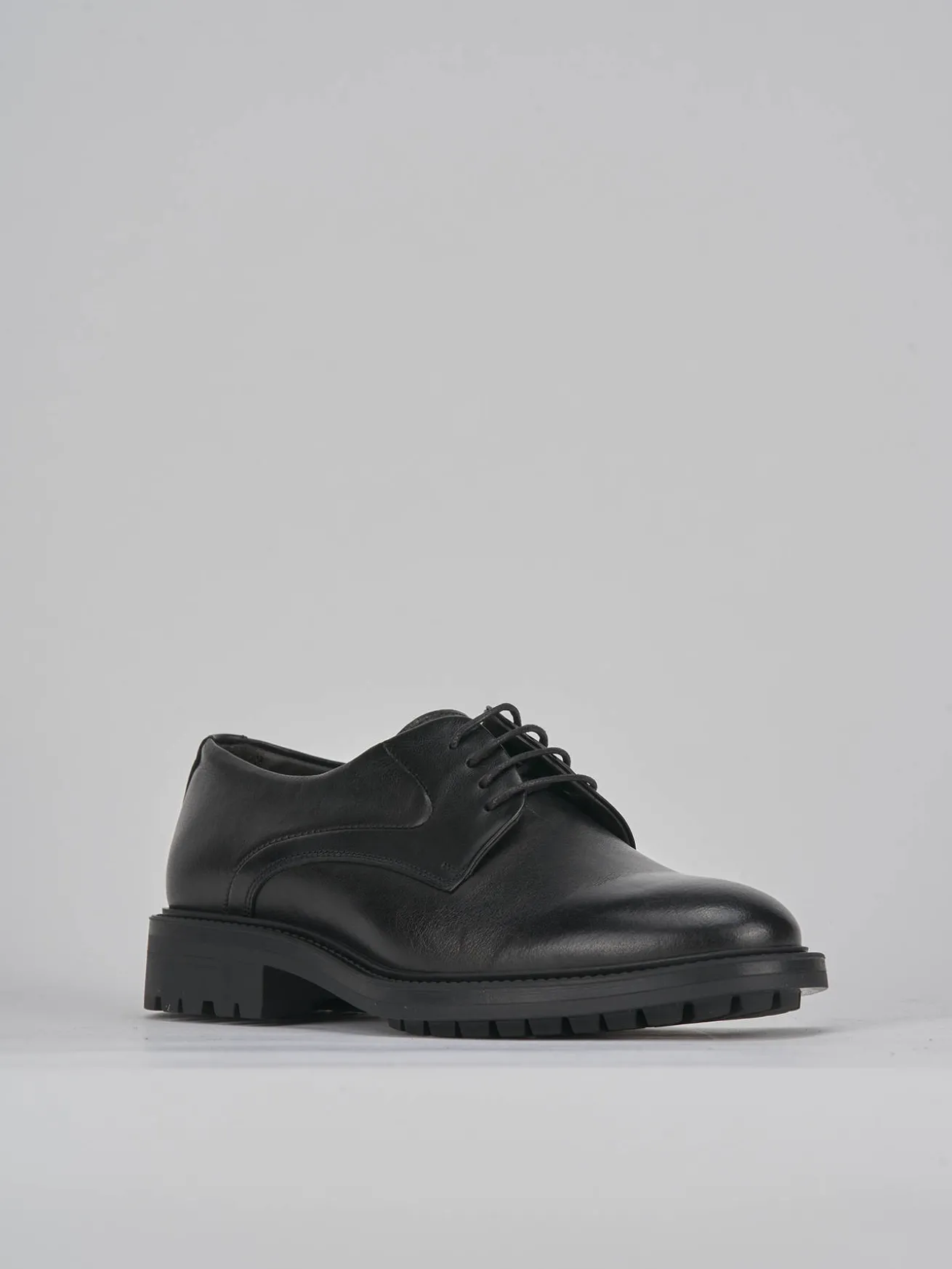 La tomaia in morbida pelle e la punta tonda conferiscono un look raffinato, mentre il modello derby con cuciture a vista aggiunge un tocco di classe.