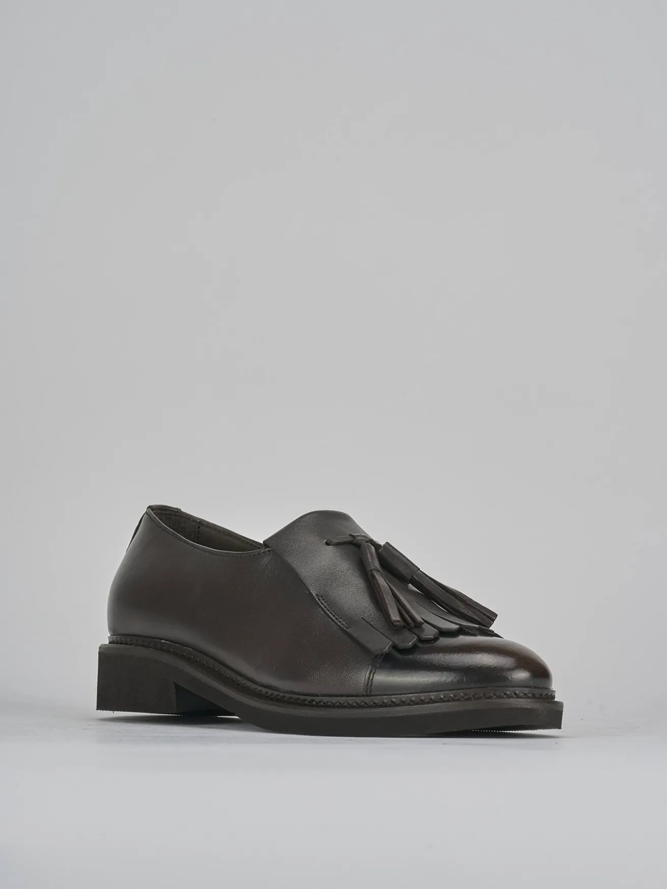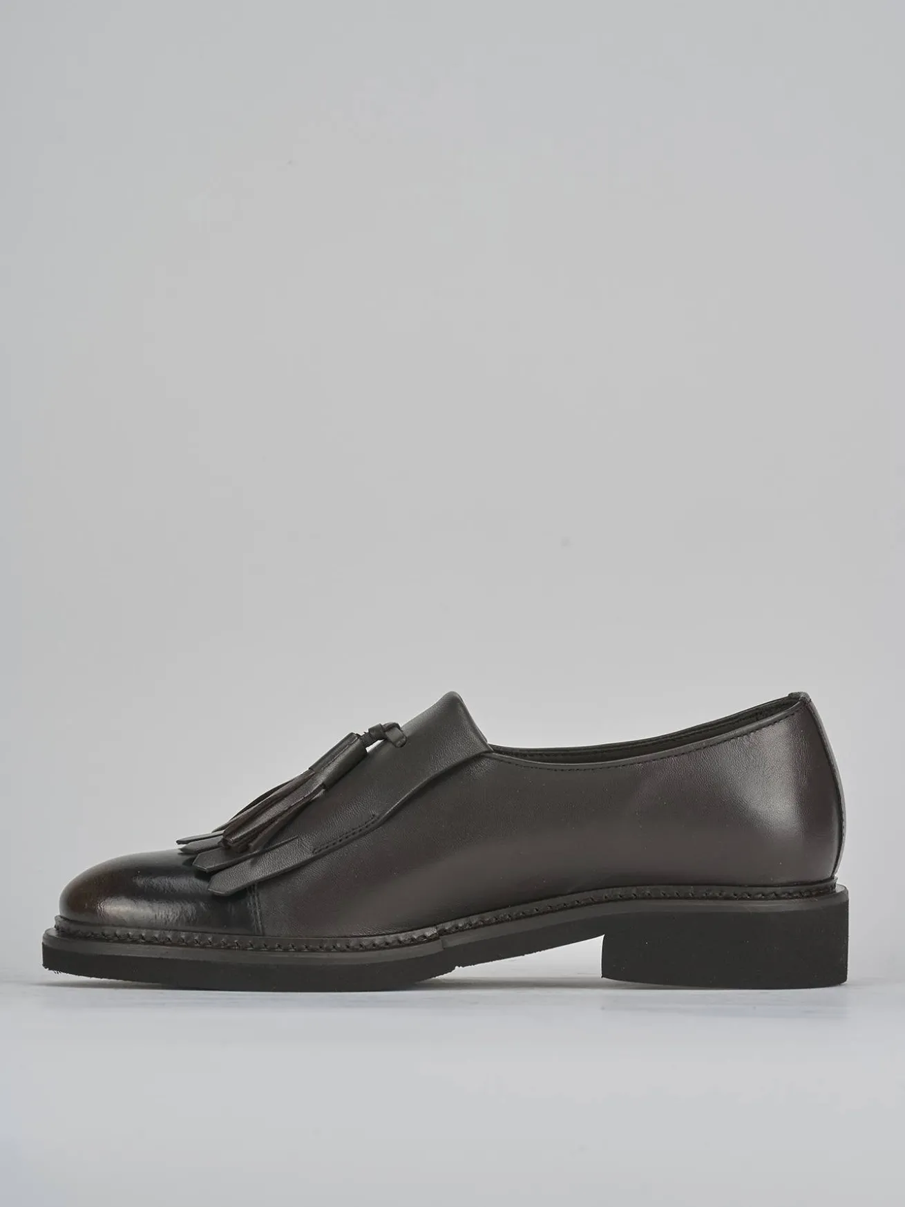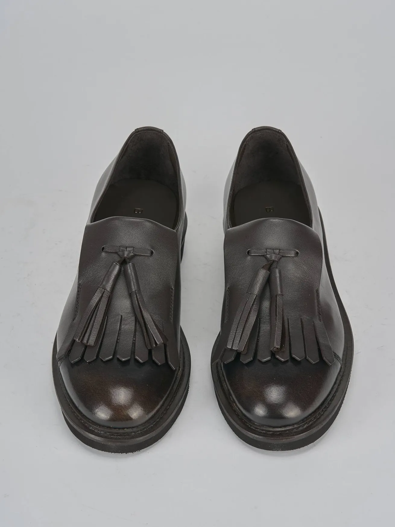 La punta affusolata e il puntale aggiungono un tocco di eleganza, mentre le nappine e le frange donano un dettaglio chic.